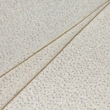 Тонкий пластичный креп белого цвета из 100% вискозы вручную расшили поблескивающими золотыми пайетками и декорировали сверкающими кристаллами Swarovski, создав роскошную ткань, которая изысканно переливается, когда на нее падает свет.