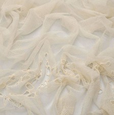 Непрозрачный плотный шелковый креп молочного цвета. Ткань не мнется, хорошо поддается драпировке и сочетается с шелком разной фактуры и плотности, например, с атласом и шифоном. Креп обладает зернистой фактурой и подходит для создания струящихся платьев и юбок