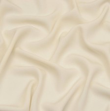 Плотный шелковый креп белого цвета, не дающий прозрачности. Фактура ткани обладает легкой зернистостью, ткань не мнется. прекрасно поддается драпировке. Может сочетаться с шелком меньшей плотности