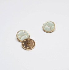 "золотая" пуговица на ножке с рельефным стилизованным изображением. Покрыта эмалью бежевого цвета.