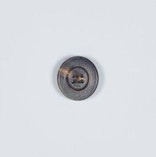 Темно-коричневая пуговица из рога, покрытая прозрачным лаком.