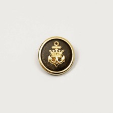 Пуговица круглая из рога и металла, декорированная рельфным металлическим якорем.