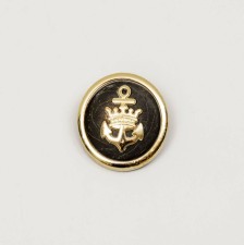Пуговица круглая из рога и металла, декорированная рельфным металлическим якорем.