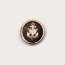 Пуговица из темного рога в металлической оправе на ножке с бронзовым гальваническим покрытием, декорирована якорем