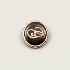 Пуговица роговая в металлической бронзовой оправе на ножке, покрыта эмалью и декорирована вензелем из металла