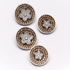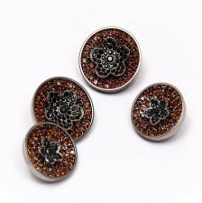 Металлическая пуговица на ножке круглой формы, по центру которой выложен цветок черными кристаллами Swarovski.