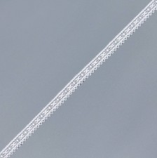 Узор — геометрический с растительными элементами и мелкие фестоны с зубчиками «пико» по одной стороне тесьмы.