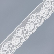 Тесьма кружевная черная из хлопка с растительным орнаментом. Фестоны по краю
