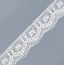 Особое изящество тесьме придает край с выразительными фестонами, каждый из которых густо украшен миниатюрными петельками «пико», создающими эффект кропотливой ручной работы.