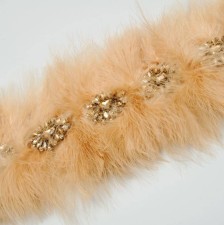 В «ТИССУРЕ» большой выбор эксклюзивной тесьмы, расшитой бисером, кристаллами и пайетками. Также у нас представлены кружевная тесьма, тесьма с перьями и различным декором.