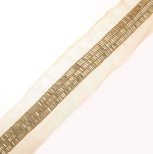 В «ТИССУРЕ» большой выбор эксклюзивной тесьмы, расшитой бисером, кристаллами и пайетками. Также у нас представлены кружевная тесьма, тесьма с перьями и различным декором.