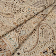 Шерсть с кашемиром бежевая с принтом в стиле "Бохо" с розово-коричневыми крупными пейсли