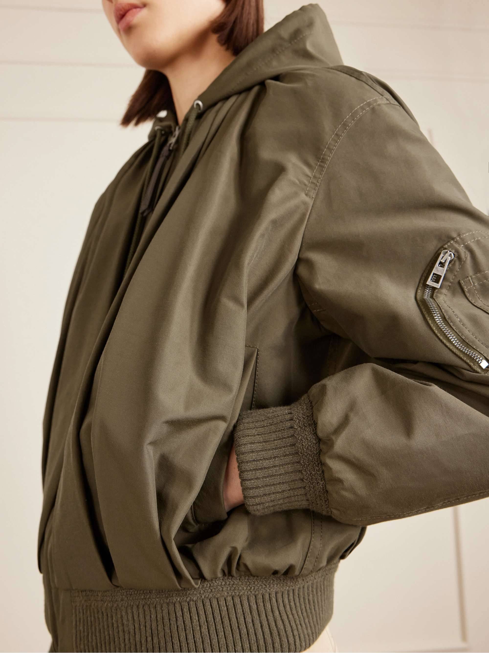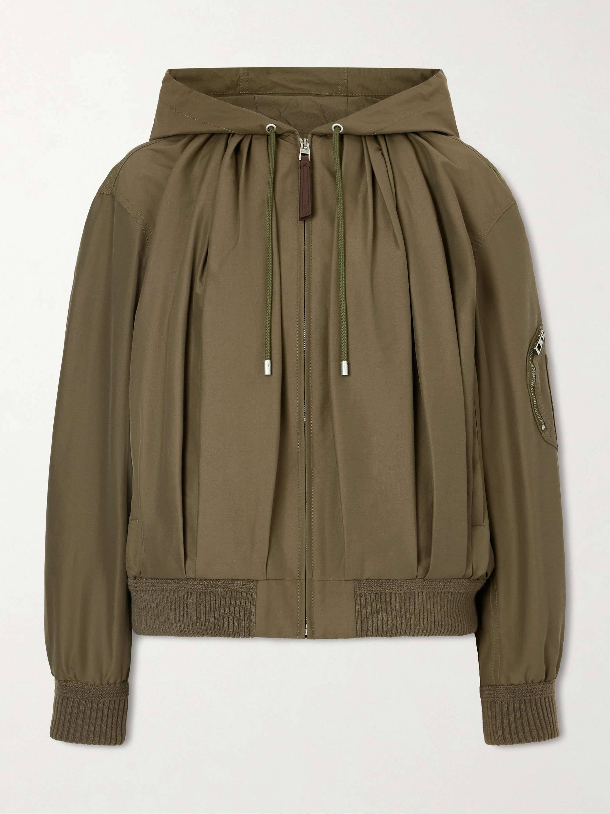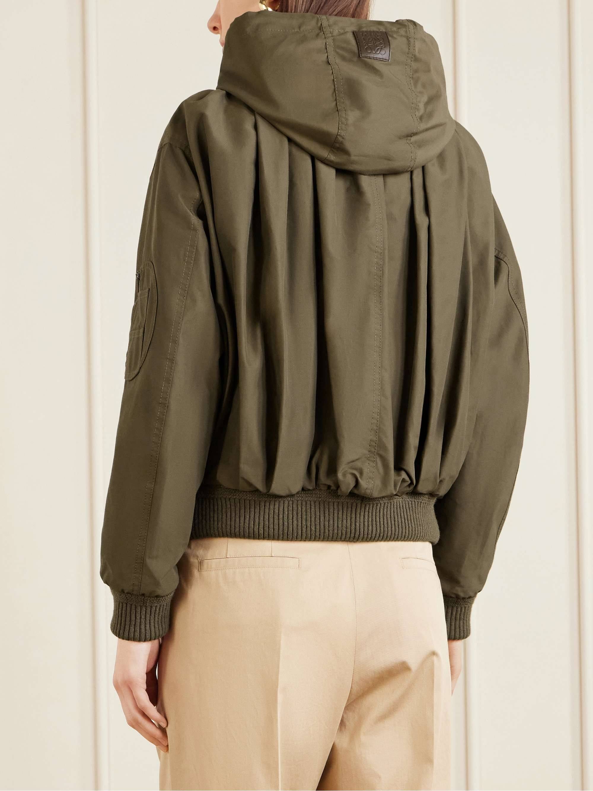 Куртка-бомбер от Loewe — идеальный вариант для переходной погоды. Она выполнена из плащевой ткани из мериносовой шерсти.