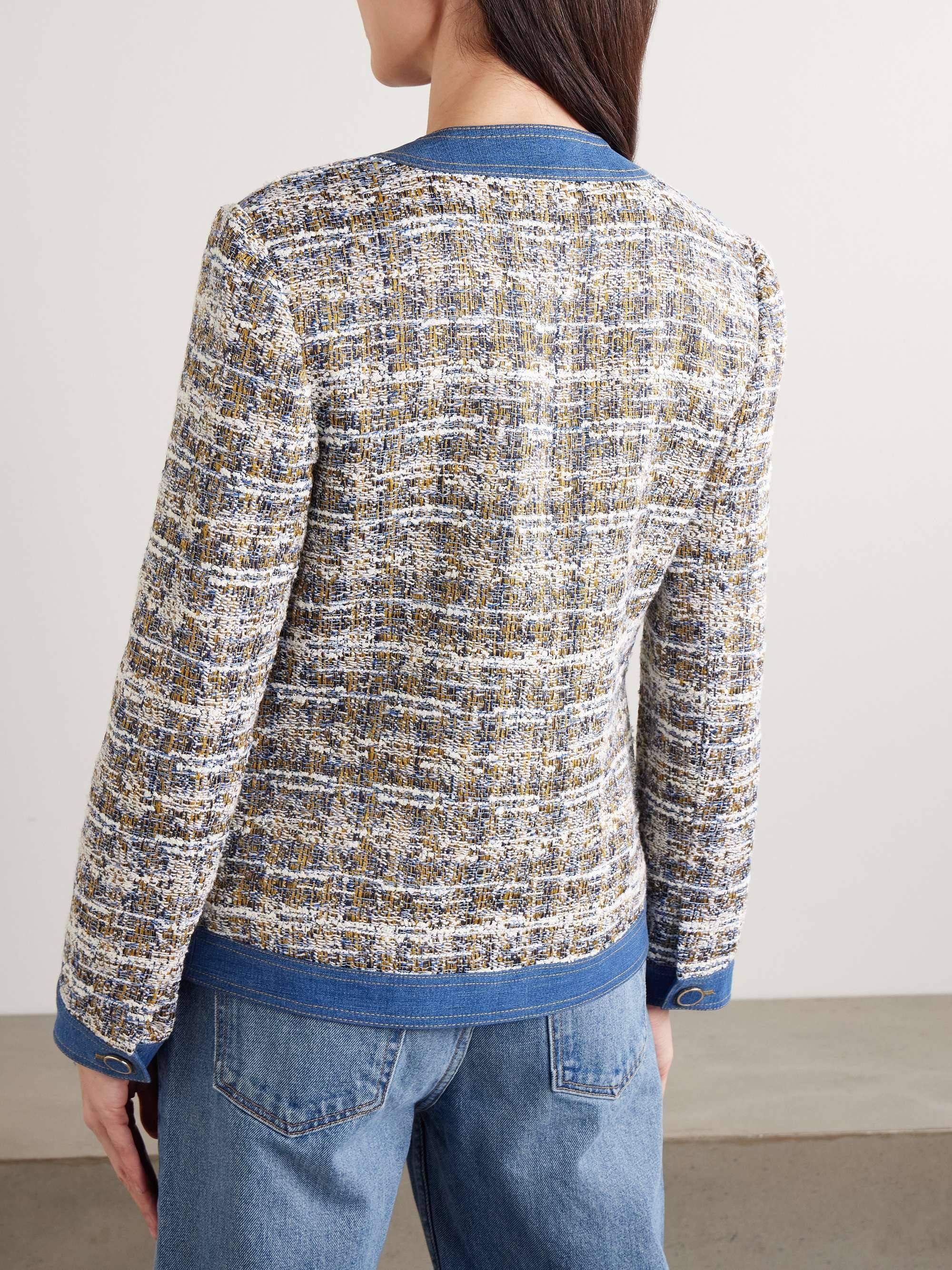 Твидовый жакет «Ainslie» от Veronica Beard привносит непринужденный шарм в классический женственный стиль. Он выполнен из букле с контрастной отделкой из денима.